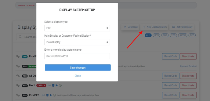 If a non-terminal display already exists to use, simply click Reset Code to generate an activation code.
