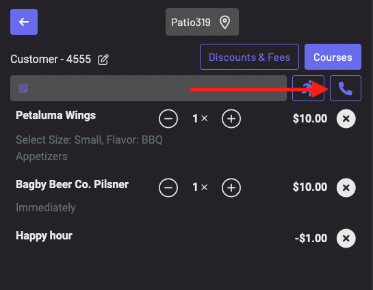 2. On the ordering screen, press the phone icon on the upper right-hand portion of your cart