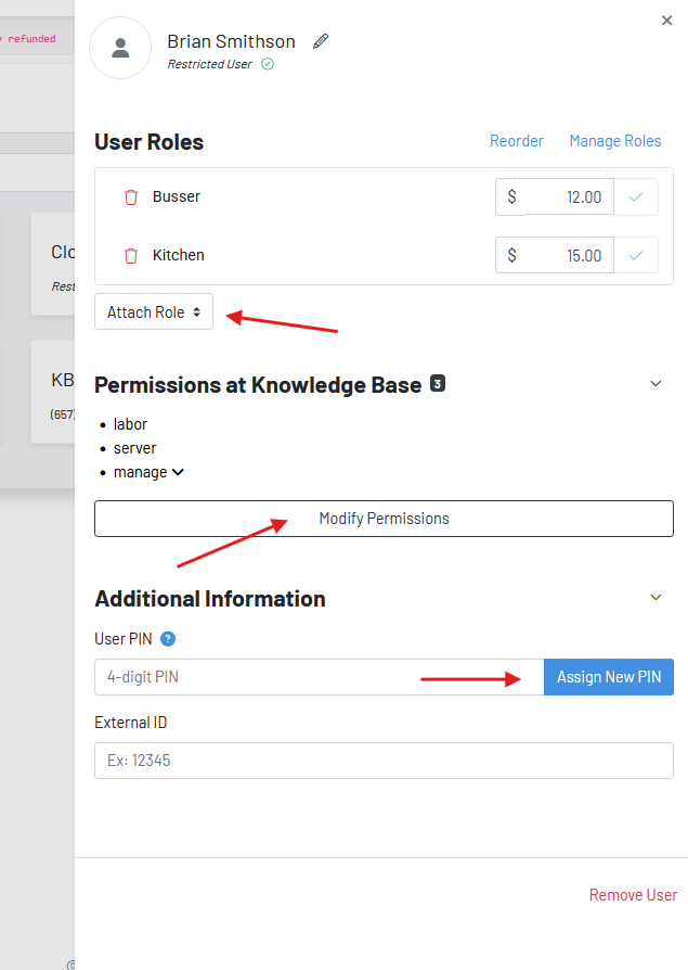 Manage: Basic manager permission. Allows user to refund, update menu, see financials, add display systems, and more.