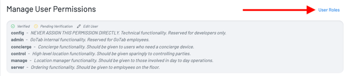 You can allow your staff to access the GoTab manager dashboard and determine which elements of the GoTab platform each individual should have access to.