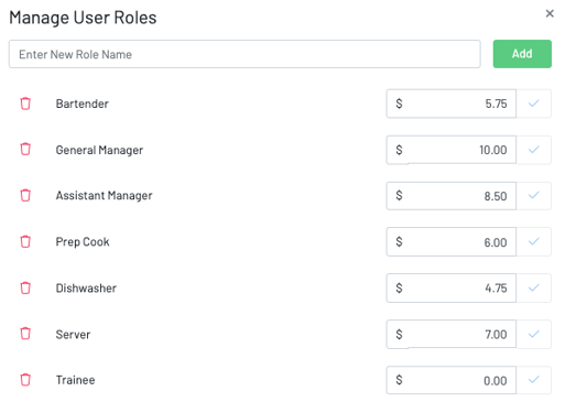 Server: Lowest permission. Required to pin into the POS and allows a staff member to take orders.