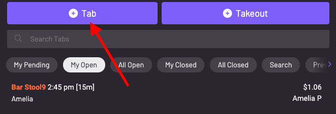 Section titled “How to start a dine in order for a guest:”Step 1: Click + Tab