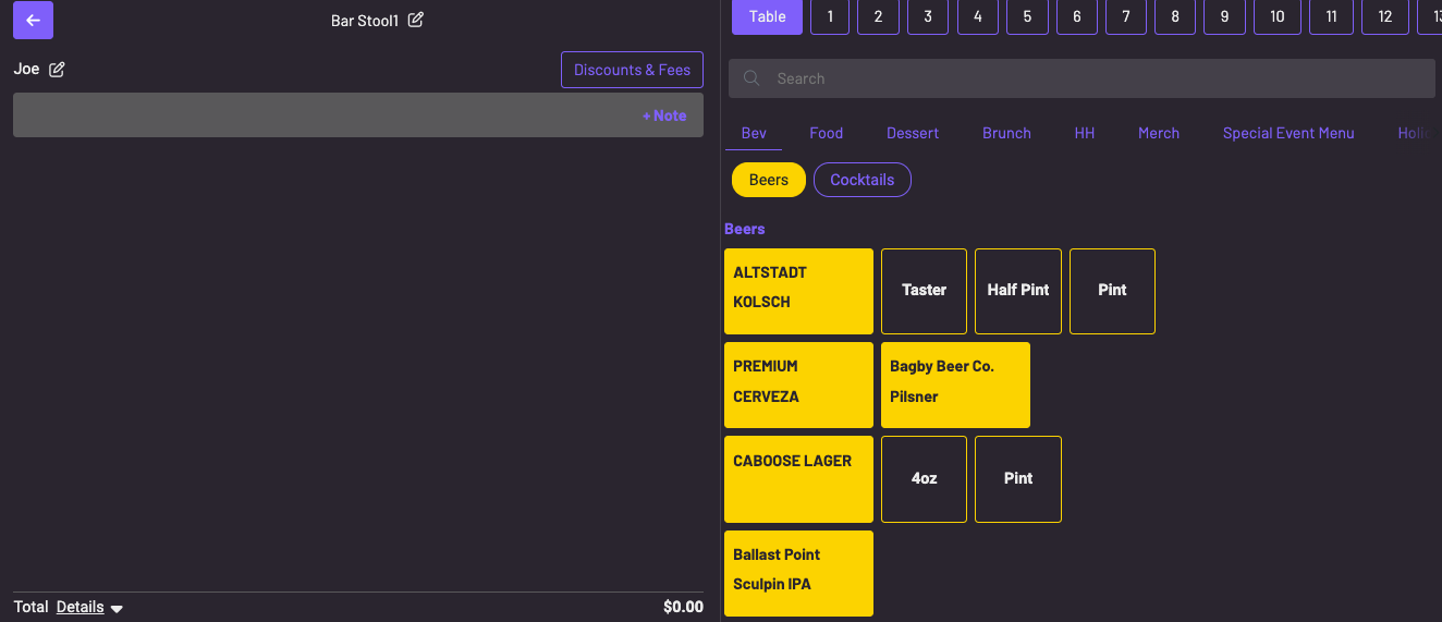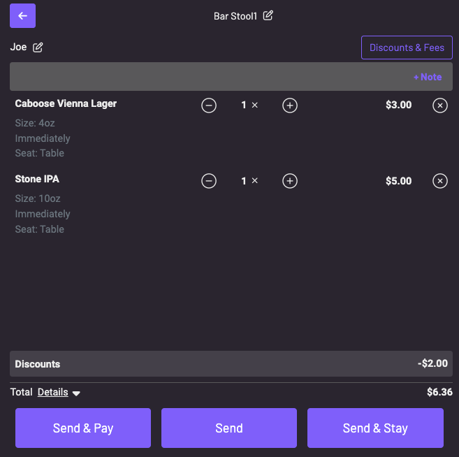 - Send an open tab order to the kitchen and authorize the guest’s card or capture payment later.