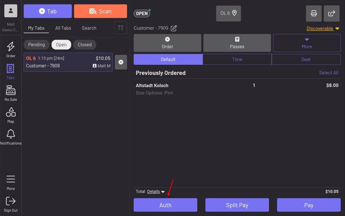 OR, if the tab has already been started, you can also click the “Auth” button.