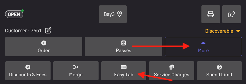 ***Note: This Easy Tab button will only show when a CFD is paired to your POS. This will not show in the POS without a connected CFD. ***