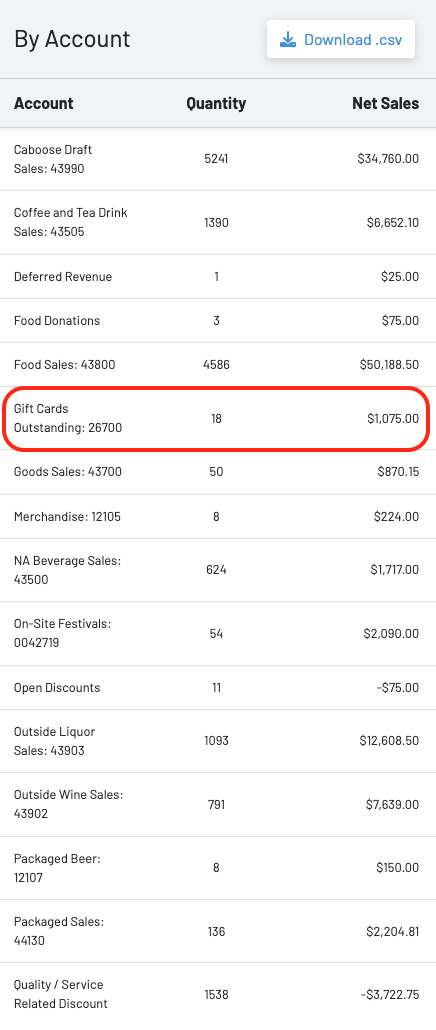 From the **accounting page, **operators can easily keep track of gift card redemption. All gift card redemption will appear as deferred revenue.