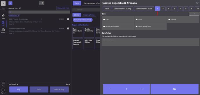 Simply click one of the numbers above the item modifiers add a seat number to an item. If it’s for the entire group, you can click “Table” to designate an item for the whole table.