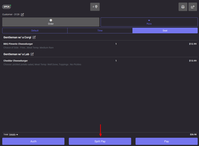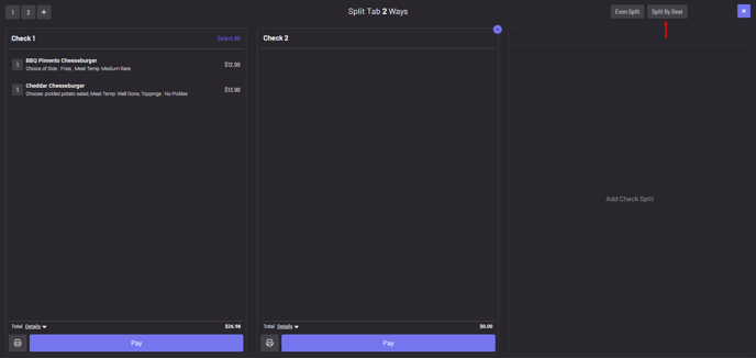 Click “Split by Seat” in the upper right to easily split the tab by the designated seats.