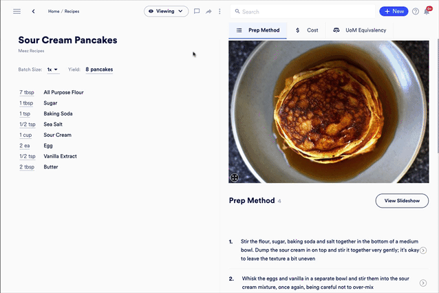 Section titled “Step One - Share meez content using the view-only function”Grant users view-only access to your content, including individual or multiple recipes, recipe books, and Docs. When you do so, the receiver will see a live version of your content, including any updates you make. However, they cannot edit or change that content.