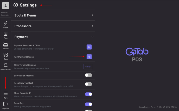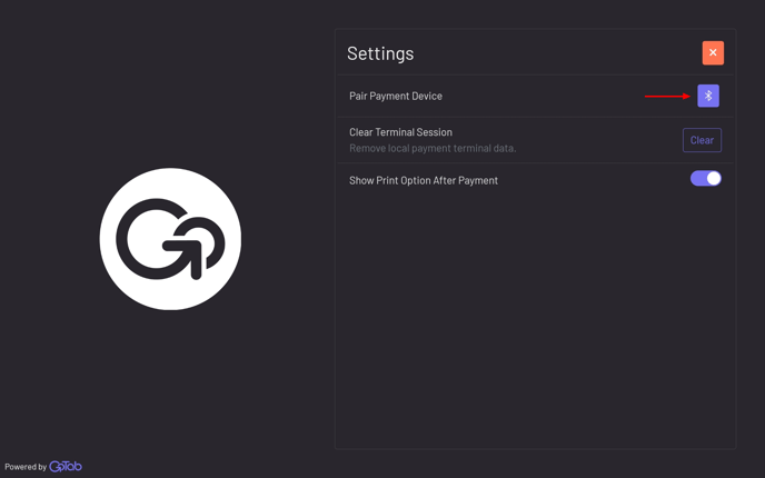 -In the POS, navigate to More—Settings—Payment—Pair Payment Device.