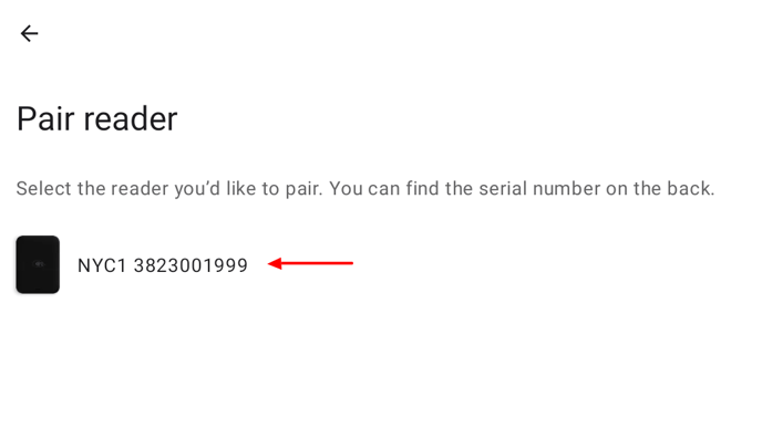 -“Your readers” indicates any NYC1s previously paired to this device. If S/N of NYC1 trying to pair matches one already listed under “your readers”, select that one and it will automatically pair.