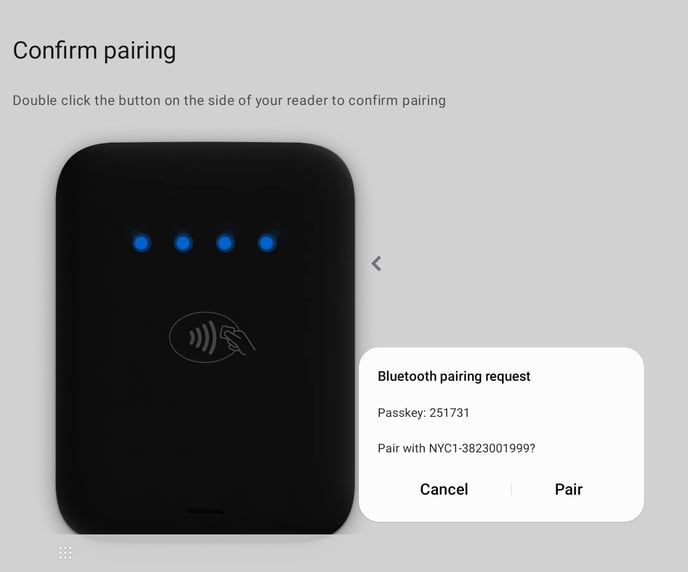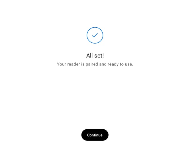 -Now that you’ve selected a reader, the reader will beep and flash blue lights, indicating it’s in pairing mode.