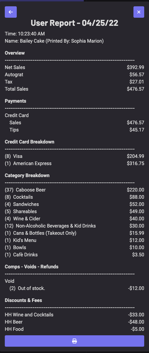 To print the user report, simply click the printer icon at the bottom
