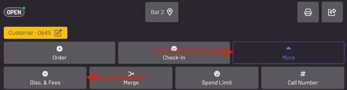 Navigate to the tab > More > Disc. & Fees > Service Fees