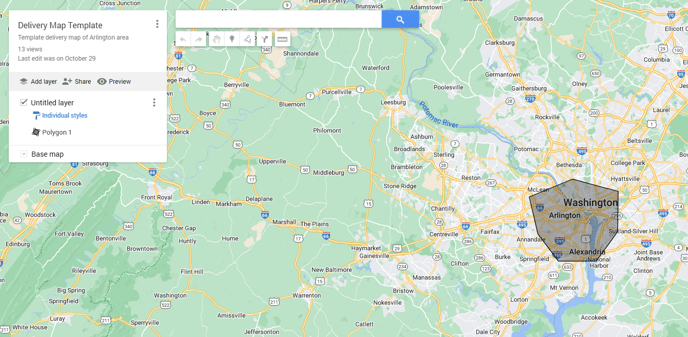 Below is a screenshot demonstrating what a correct delivery zone would look like when creating in Google Maps.