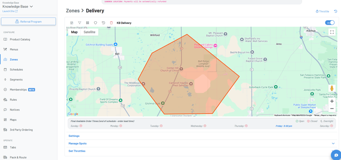 Below shows what it looks like in the GoTab Manager Dashboard when a delivery map has been uploaded to your delivery zone(s).