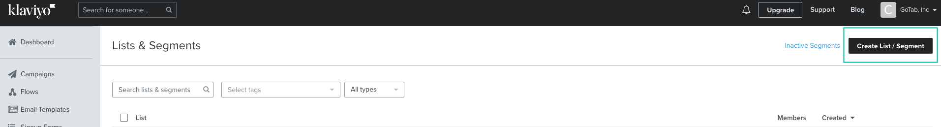 Before a Klaviyo list can be synced with your GoTab account make sure you have added your API Keys into GoTab. Please review and confirm the steps in this article have been completed before proceeding.