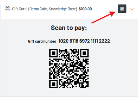 - Have the guest scroll down to gift cards and select the QR icon next to the correct gift card