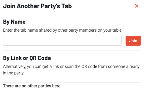 Note: for them to be able to join your tab, they will have to spell your name EXACTLY as you entered it when you first created the tab. This is a security measure to ensure that strangers are not able to join your tab and place orders under your name.