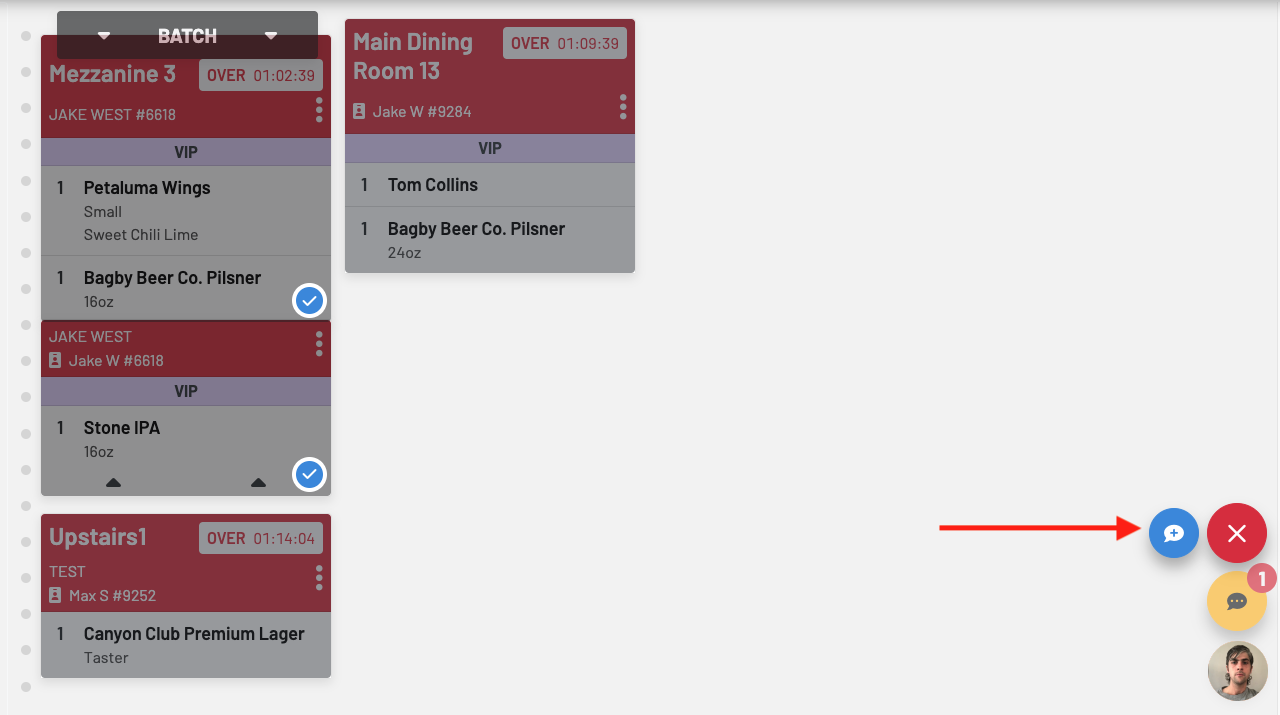 To access this, click the pointer icon on the bottom right of your KDS, then select the guests’ tickets you want to send a message to.