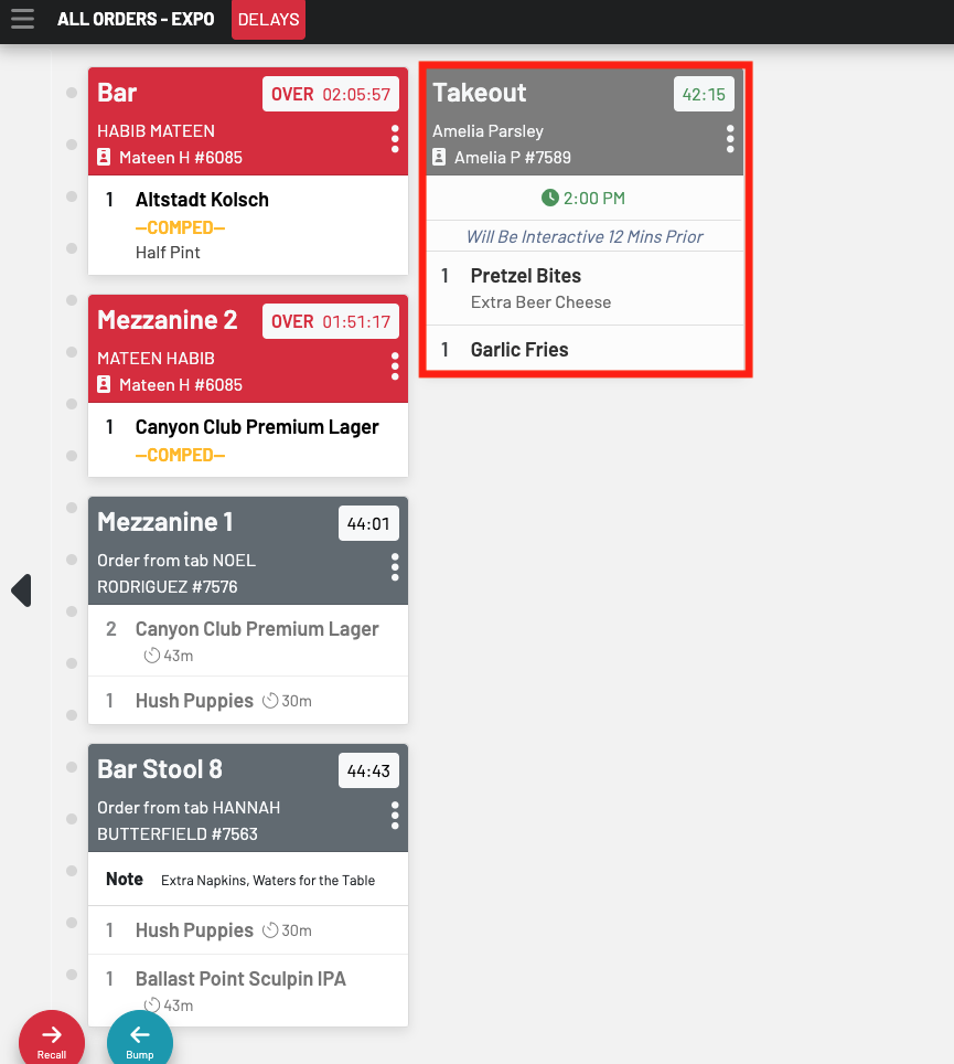 Takeout tickets will show the time the takeout is scheduled for as well as when the ticket will be interactive.