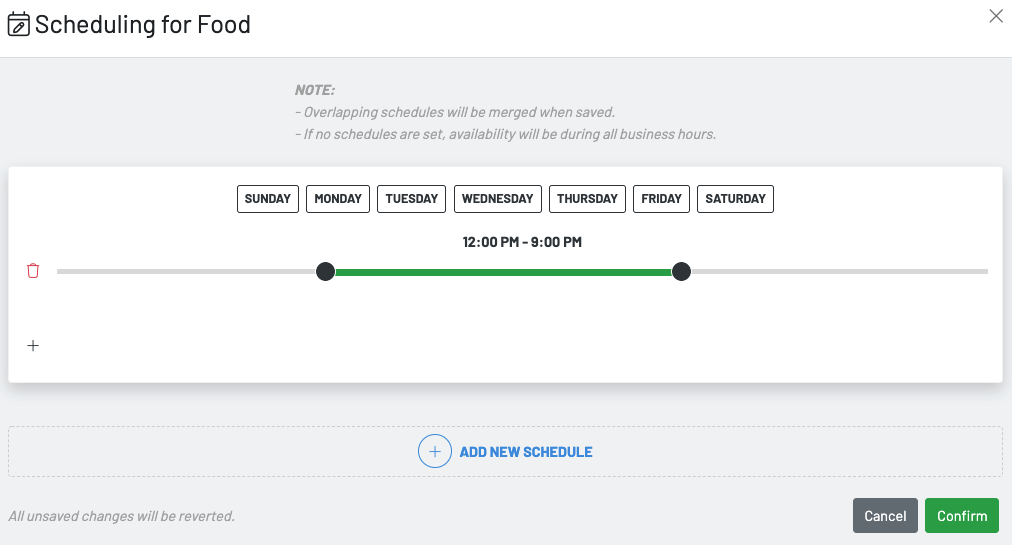 Setting a schedule on a menu is helpful if you serve different menus during different times.