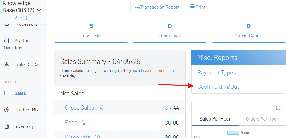 ** View your Paid In/Paid Outs on the sales dashboard**