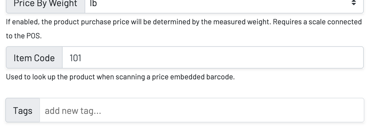 Price embedded barcodes will allow you to scan a product and within the barcode, a unit price is embedded. Then, you take that just scanned product and weigh it. With the price embedded in the barcode, once you weigh the product, the final price will automatically populate on the tab. (Think grocery store where you weigh a product and it prints a barcode that you scan at checkout. The price is embedded within that barcode so when you scan at checkout, the correct amount is added to your cart).