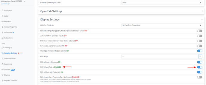 Navigate to Locating Settings—Displays Settings—POS Refund Mode