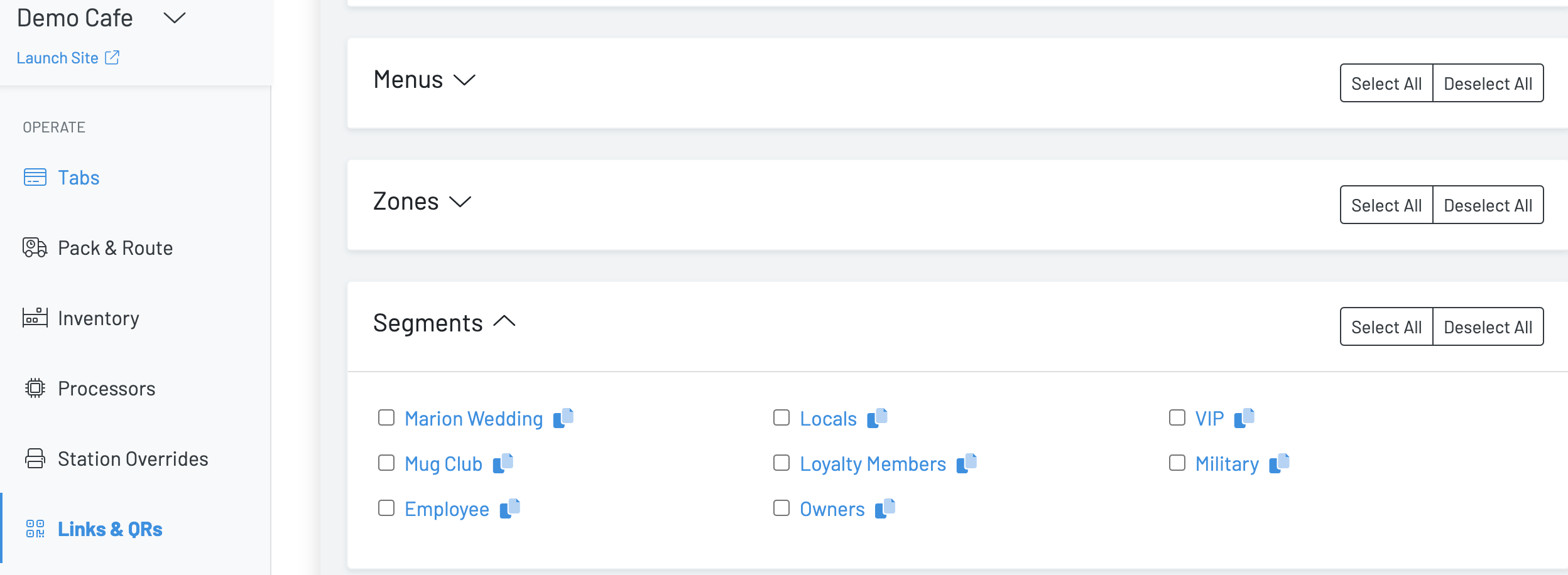 Under the Links & QRs dashboard, navigate to segments