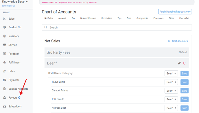 - Click the gear icon on the Payouts page to get to our new Chart of Accounts.