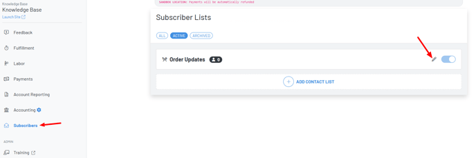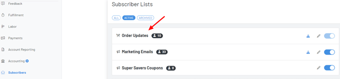 -Navigate to your Subscribers Page in the GoTab Manager Dashboard and click the pencil icon on Order Updates.