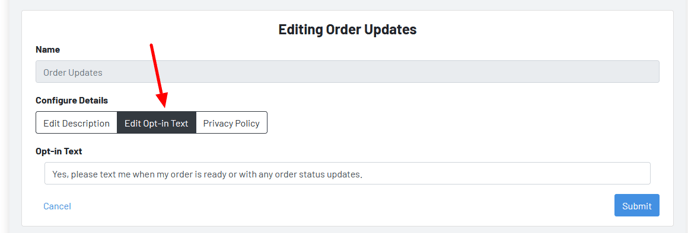 -From here, click submit and your SMS Order Updates messaging is complete.