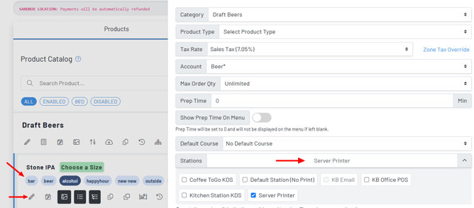 In the example below, we see our Stone IPA is set to go to our Server Printer station as a baseline.