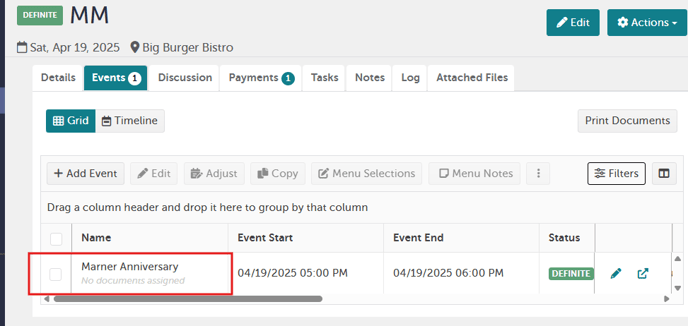 Step 1: Create Event Tab and Pull In Items from BEO