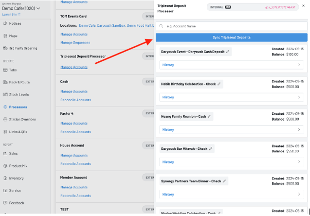 Click the blue “Sync Tripleseat Deposits” button