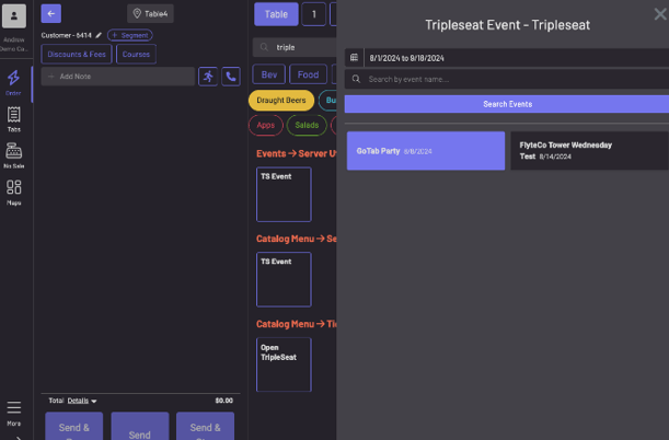 From the GoTab POS, open a tab for your event and search for the “TS Event” button