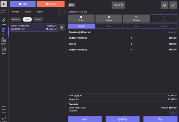 Once the deposit has been applied, you will see the deposit amount deducted from your open tab.
