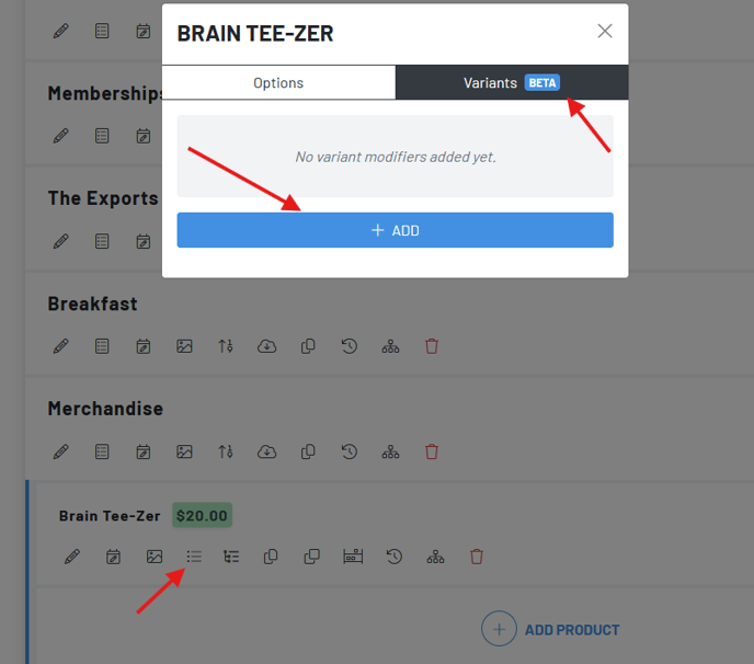 If you wish to use variants and do not see them as an option, please reach out to your account manager or chat support to turn on variants at your location.